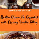 These Boston Cream Pie Cupcakes feature a moist vanilla cupcake base filled with creamy vanilla pudding and topped with a rich, smooth chocolate ganache. Inspired by the classic Boston cream pie dessert, these cupcakes combine fluffy cake, luscious cream filling, and decadent chocolate to create an indulgent treat perfect for any occasion.