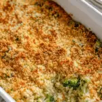 This Broccoli Rice Casserole recipe is a comforting, cheesy dish perfect as a hearty side or main. Tender broccoli florets are combined with creamy, slow-cooked rice and sharp cheddar cheese, then baked with a crunchy Parmesan-Panko topping for a deliciously satisfying texture and flavor combination.