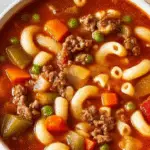 Busy Day Soup is a comforting and hearty American soup loaded with seasoned lean ground beef, a variety of vegetables, and tender elbow pasta, all simmered in a flavorful broth. This quick and easy recipe is perfect for busy days when you need a filling, nutritious meal that comes together in under an hour.