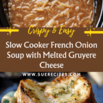 This Slow Cooker French Onion Soup is a comforting and rich classic dish made easy with a slow cooker. Sweet caramelized onions simmer in a flavorful broth with hints of red wine, herbs, and Worcestershire sauce. Topped with toasted baguette slices and melted Gruyere and Parmesan cheeses, this soup offers a perfect blend of deep flavors and creamy, cheesy goodness, ideal for a cozy meal.
