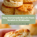 These Easy Homemade Biscuits are fluffy, buttery, and perfect for any meal. Made from scratch with simple ingredients like all-purpose flour, baking powder, and cold butter, these biscuits bake quickly to golden perfection and are brushed with melted butter for a delicious finish. Ideal for breakfast, lunch, or dinner, these biscuits are a comforting classic everyone will love.