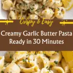 This delicious Garlic Butter Pasta is a creamy, savory one-pot meal perfect for busy weeknights. Combining tender shellbow pasta with a blend of aromatic herbs, garlic-infused butter, and a rich Parmesan cheese sauce enhanced by a touch of lemon, this recipe is quick to prepare and serves six people. The dish requires minimal cleanup and delivers comforting flavors with every bite.