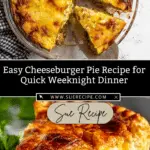 This cheeseburger pie serves about 6 generous portions, making it ideal for a family meal or a small gathering. The prep time is around 15 minutes, with about 30 minutes of cooking, so you’re looking at roughly 45 minutes total from start to table. Allow an extra 5 to 10 minutes of cooling before serving to get the best texture and clean slices. It’s a satisfying dinner that fits beautifully into a busy weeknight or relaxed weekend.