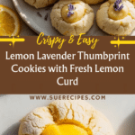 These Lemon Lavender Thumbprint Cookies are delicate, buttery treats infused with fragrant culinary lavender and bright lemon zest. Each cookie has a charming thumbprint filled with tangy lemon curd, creating a perfect balance of floral and citrus flavors. With a tender texture and a hint of vanilla and almond, these cookies are ideal for tea time, holiday baking, or as a delightful gift.