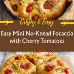 I truly hope you give this Mini No-Knead Cherry Tomato and Rosemary Focaccia Recipe a try—it has become one of my favorite go-to breads because it’s so simple yet impressively flavorful. Whether you’re a baking newbie or a seasoned pro, this recipe delivers satisfying, aromatic focaccia with minimal effort. I promise it will become a beloved staple in your kitchen, bringing comfort and joy with every bite.