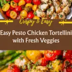 This vibrant and flavorful Pesto Chicken Tortellini and Veggies recipe combines tender chicken thighs, fresh asparagus, sun-dried tomatoes, cherry tomatoes, and cheesy tortellini all tossed in a fragrant basil pesto sauce. Perfect for a wholesome and easy weeknight meal, this dish offers a balanced blend of protein, vegetables, and pasta, cooked quickly on the stovetop.