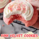 Delight in these soft and chewy Pink Velvet Crumbl Cookies topped with rich vanilla cream cheese frosting and a sprinkle of cookie crumbles. Perfectly pink and bursting with flavor, these cookies are a festive treat ideal for gatherings or special occasions.