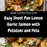 Sheet Pan Roasted Lemon Garlic Butter Salmon with Feta and Olives Recipe