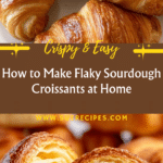 Learn how to make irresistibly flaky and buttery sourdough croissants using an active sourdough starter. This recipe involves slow fermentation for enhanced flavor, lamination with a rich butter filling for layers, and careful shaping and proofing to create perfect golden croissants. A classic French pastry made with natural leavening, ideal for breakfast or a special treat.