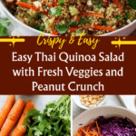 A refreshing and healthy Thai Quinoa Crunch Salad packed with vibrant vegetables, crunchy peanuts, and a flavorful sesame-lime dressing. Perfect as a light lunch or a side dish, this salad combines fluffy quinoa with fresh bell pepper, cucumber, carrots, and aromatic herbs for a nutritious and delicious meal.
